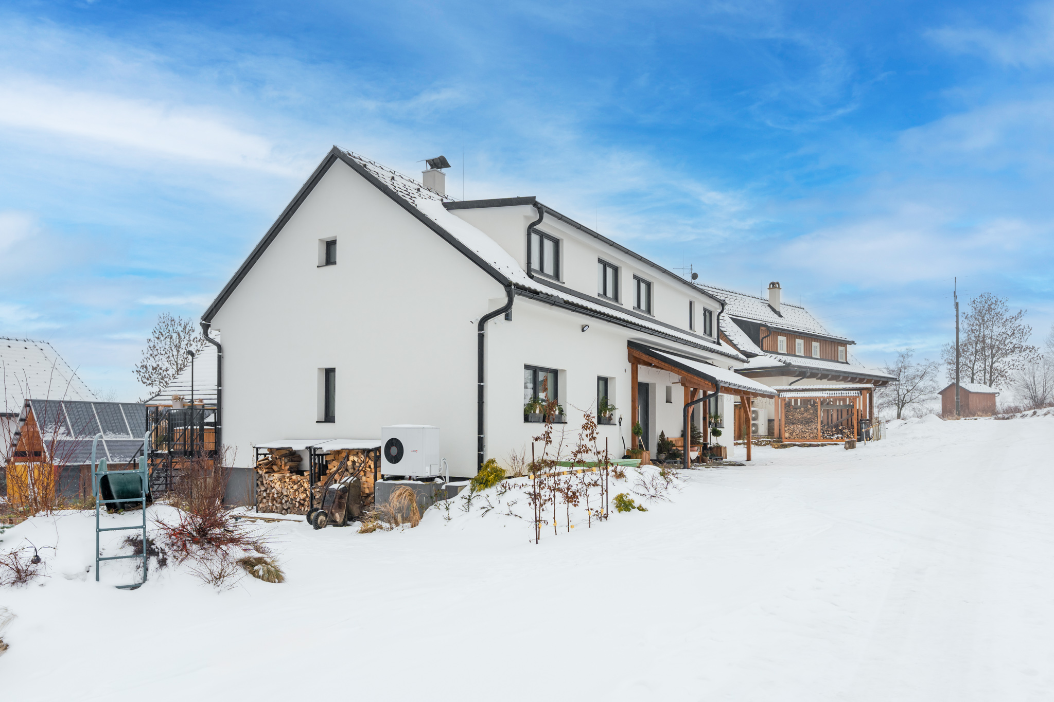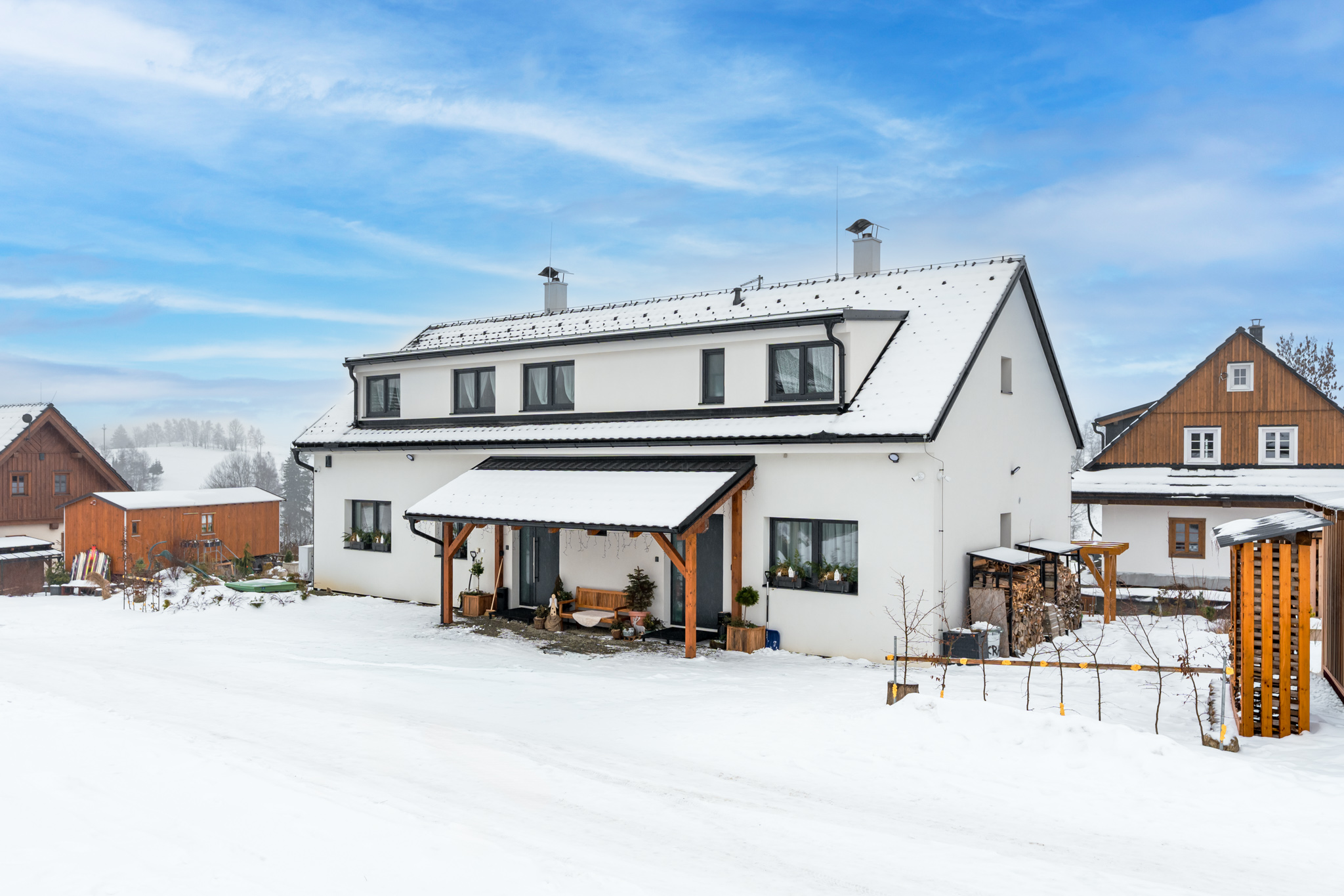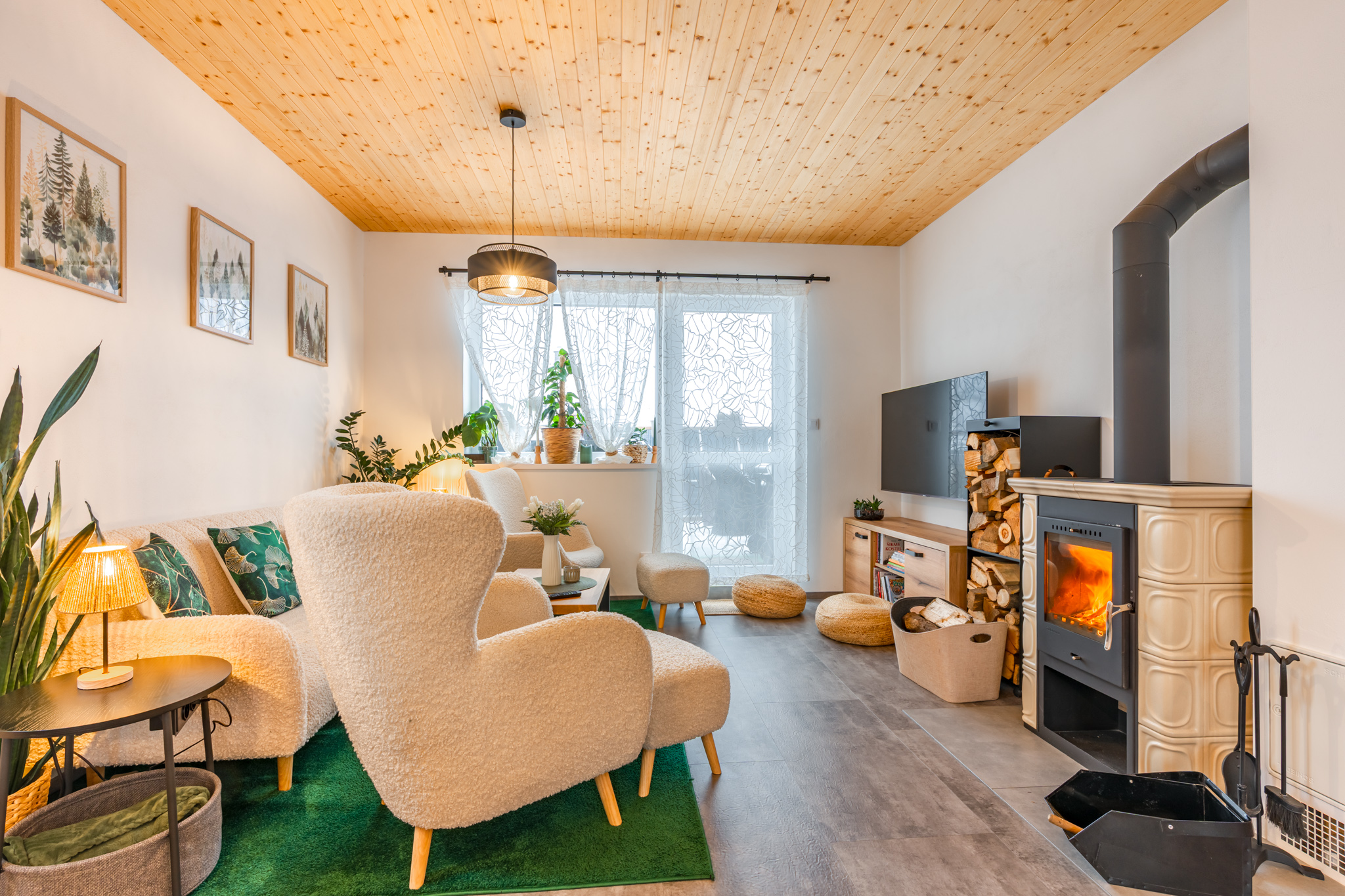 Dva apartmány, každý s vlastním kouzlem – prostorný pro přátele, útulný pro rodiny. Moderní vybavení, krbová kamna i terasa s výhledem na hory vytvářejí zázemí, které má duši.