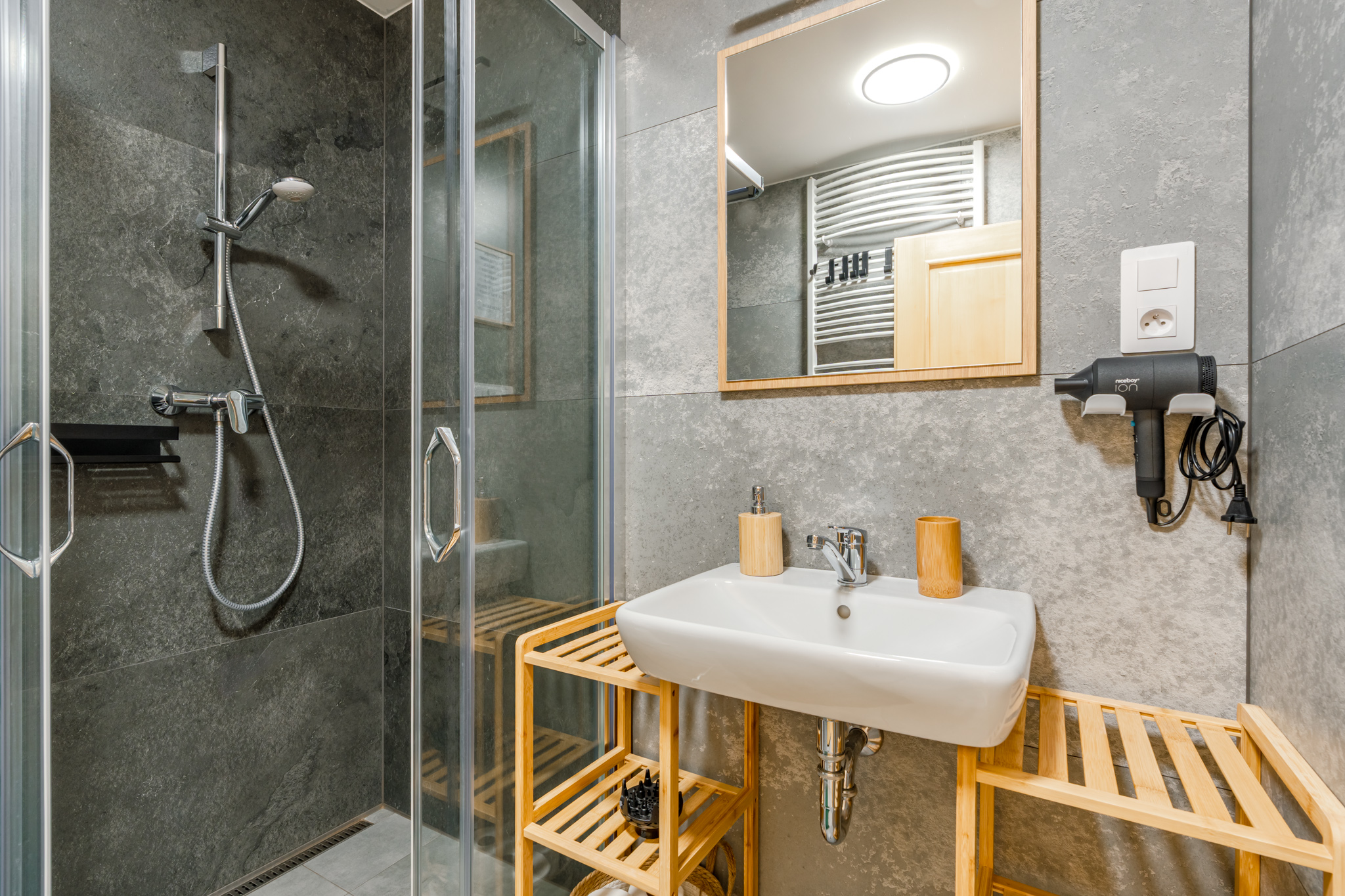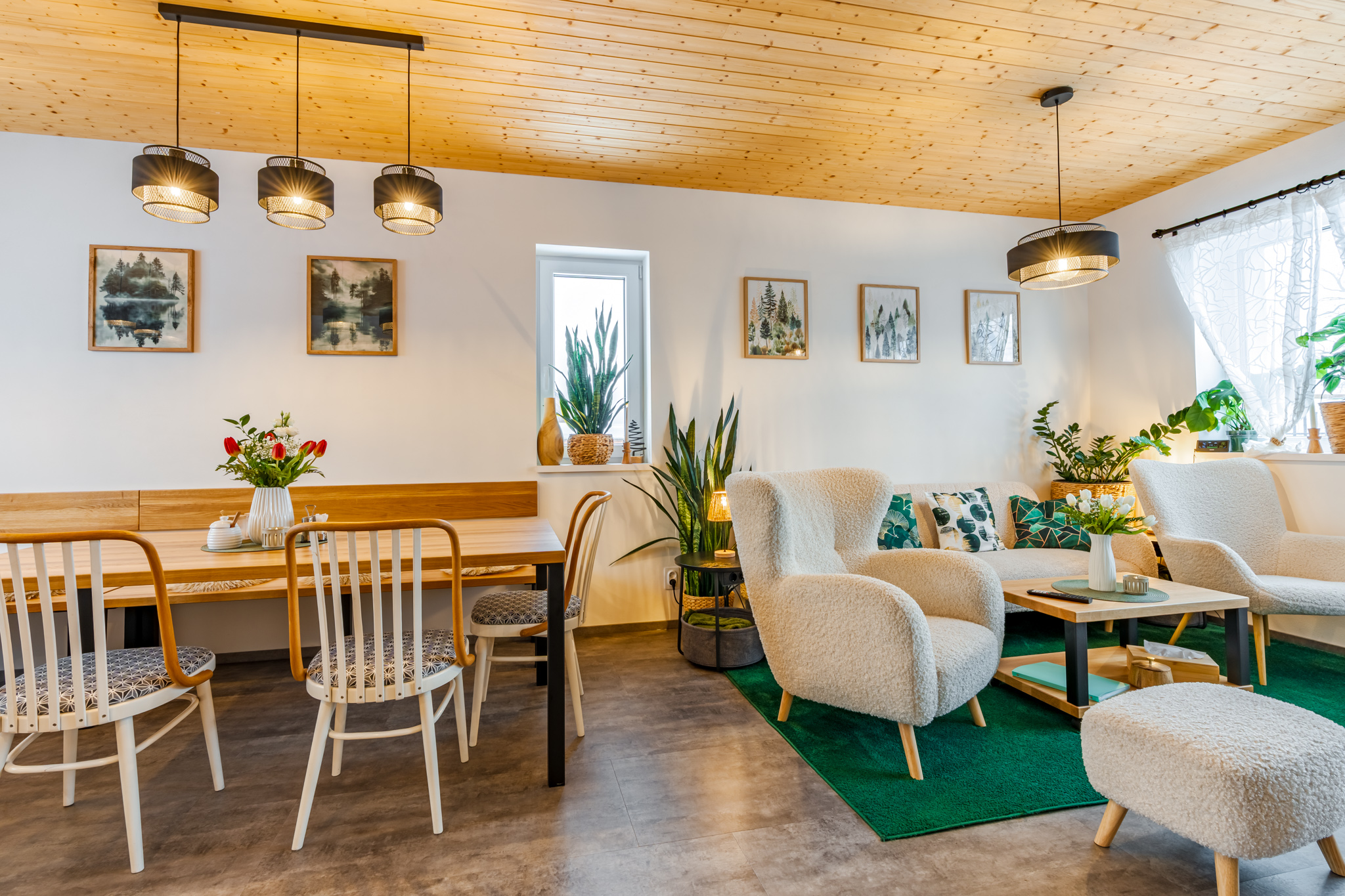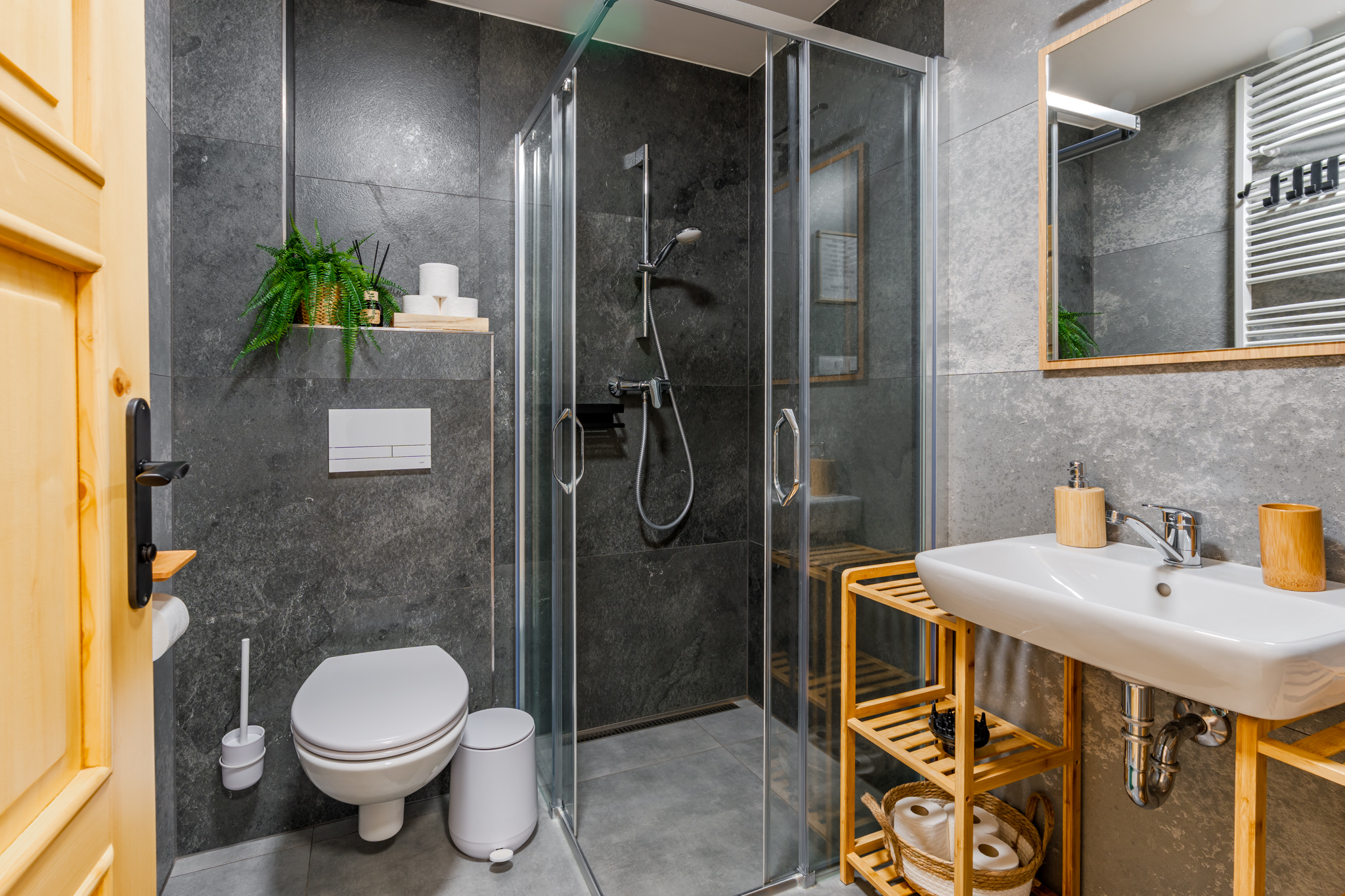 Dva apartmány, každý s vlastním kouzlem – prostorný pro přátele, útulný pro rodiny. Moderní vybavení, krbová kamna i terasa s výhledem na hory vytvářejí zázemí, které má duši.