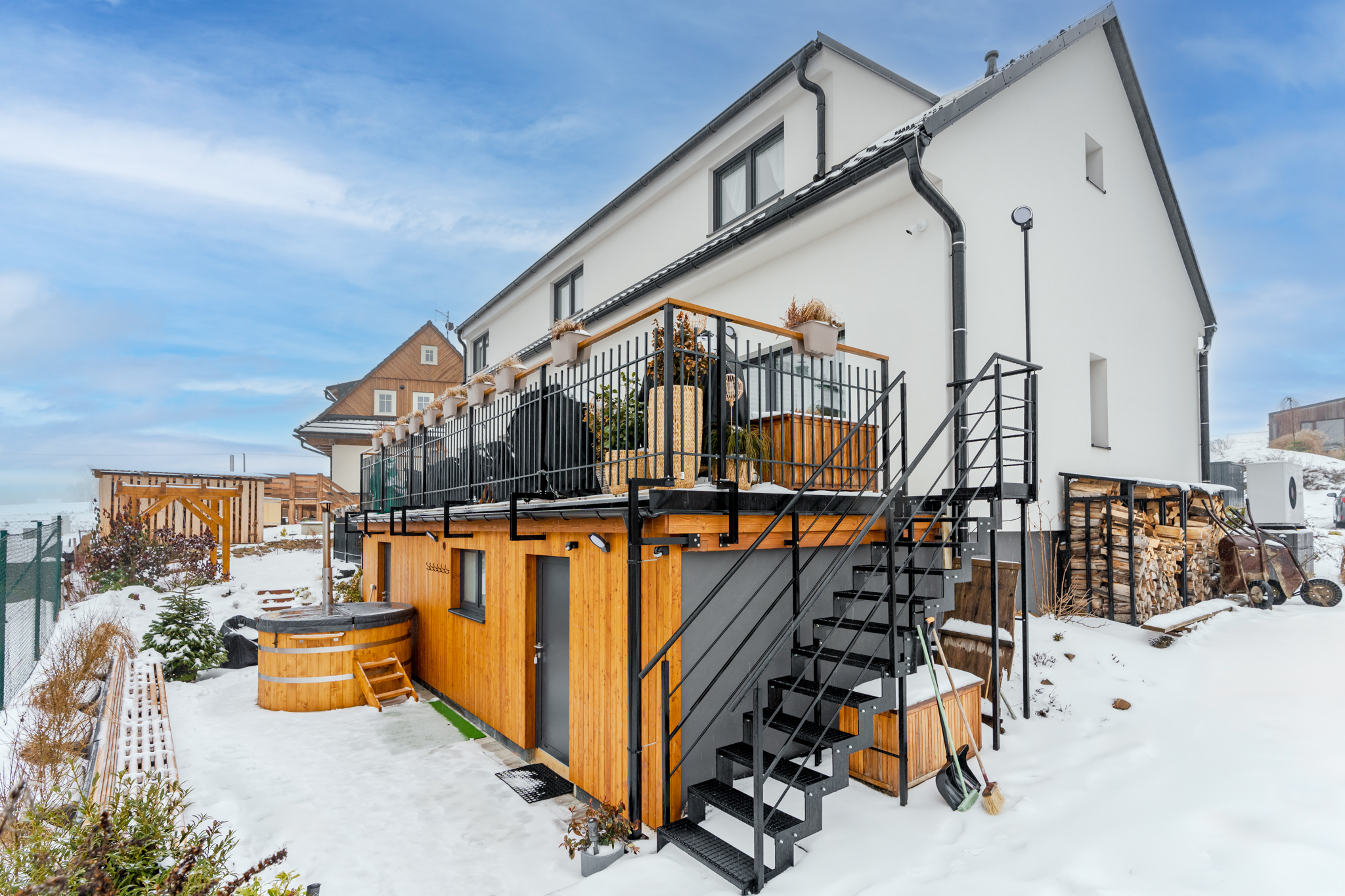 Po dni plném zážitků si dopřejte finskou saunu, koupací sud nebo večerní klid na terase. Vůně dřeva, teplo sauny a chlad horského vzduchu – dokonalá rovnováha pro tělo i mysl.