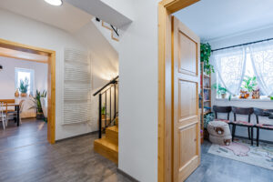 V přízemí se nachází samostatná toaleta, která poskytuje pohodlí pro hosty při vstupu do apartmánu.